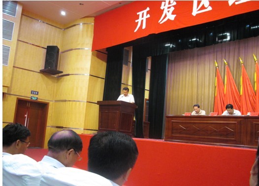 2013年7月27日上午8:30,開發(fā)區(qū)管委會組織區(qū)屬黨政負(fù)責(zé)人、區(qū)(鎮(zhèn))機(jī)關(guān)中層以上干部,規(guī)模以上企業(yè)主要負(fù)責(zé)人、國稅局、地稅局、工商局駐區(qū)機(jī)構(gòu)負(fù)責(zé)人;供電公司、商業(yè)銀行、各村主要負(fù)責(zé)人在區(qū)委黨校大禮堂召開經(jīng)濟(jì)工作會議。